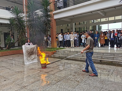 在雁山校区萃华楼开展了消防安全演练活动。学校党委常委、副校长王敦球到场指导并作消防安全演练动员部署,保卫处相关同志、学院全体教师和学生代表参加了此次演练。
