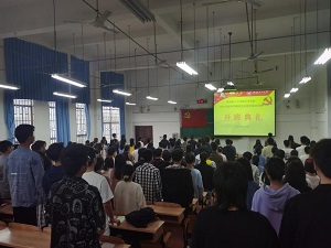 会议开始,到会全体人员起立,齐唱国歌。随后,19级本科生张立同志作为学生代表上台发言,并代表全体学员向党组织保证:我们联合分党校第一期发展对象培训班全体学员一定不辜负老师和学校的期望,努力学习,遵守纪律,在行动上和思想上积极向党组织靠拢,争取以优异的成绩和表现通过党校的培训考核。