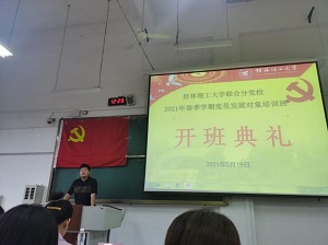 、马克思主义学院、理学院、测绘与地理信息学院)联合分党校2021年春季学期党员发展对象培训班开班仪式在06207教室顺利举行,201名发展对象全部参加。开班仪式由杨平平老师主持,寸止挑战