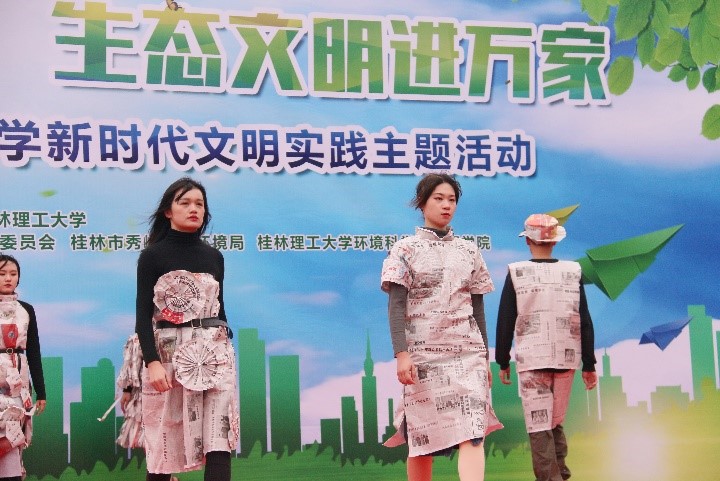 主题活动以啦啦操《活力源泉》开场,我校校长解庆林,秀峰区委副书记、副区长刘丰华先后为活动的致辞。解庆林校长表示:高校作为人才培养主阵地、服务社会战略高地,加强生态文明教育,增强青年大学生环境保护意识和行动自觉,引领带动社会更加积极地践行人与自然和谐共生理念,是光荣的使命和义不容辞的责任,并寄语我校学子要深入基层社区,推广环保知识,宣传环保理念;秀峰区委副书记、副区长刘丰华介绍了秀峰区与我校联合开展实践育人工作的成果,肯定了我校学子深入社区,深入基层,将环保理念播撒在八桂大地的积极行动。为表彰在生态文明建设发展中默默奉献的宣讲员及志愿者们,在启动仪式中分别为桂林市秀峰区生态文明宣讲员、桂林市秀峰区青年环保科普志愿者、桂林市秀峰区践行社会主义核心价值观宣讲志愿者颁发了荣誉证书。