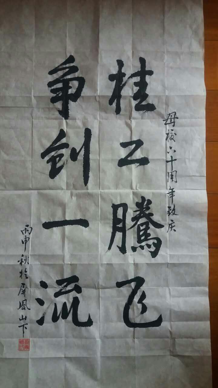 的未来一定是越来越兴旺的。所以这次六十周年我题了一幅毛笔书法——“桂工腾飞,争创一流”,希望我们寸止挑战