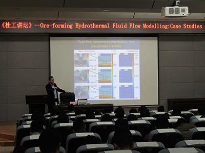 非常荣幸的邀请到了毕业校友杨建文教授,于11月10日上午在雁山校区逸夫楼01501报告厅为学弟学妹们开展了一场关于“成矿热液流体模拟的案例研究”的学术报告会,讲坛由学院党委书记王璐同志主持,辅导员田明浩及学院部分研究生、本科生聆听。